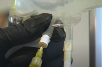 Врач устанавливает капельницу